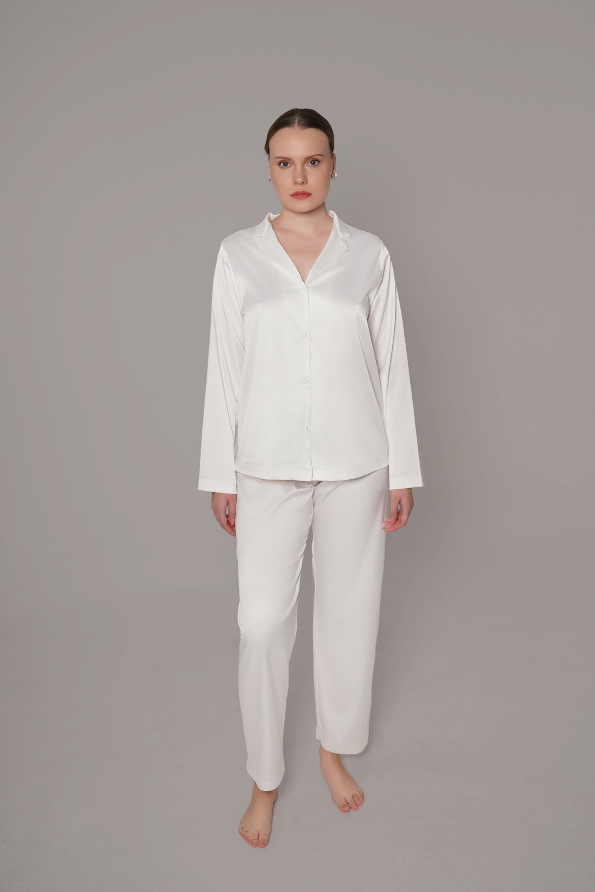 Helen Pijama Grubu, satenin lüks dokusunu ve yumuşaklığını hissetmeniz için tasarlandı. Her dokunuşta teninizde hafif bir kucaklama hissi yaratan bu pijamalar, rahatlık ve şıklığı bir arada sunuyor.